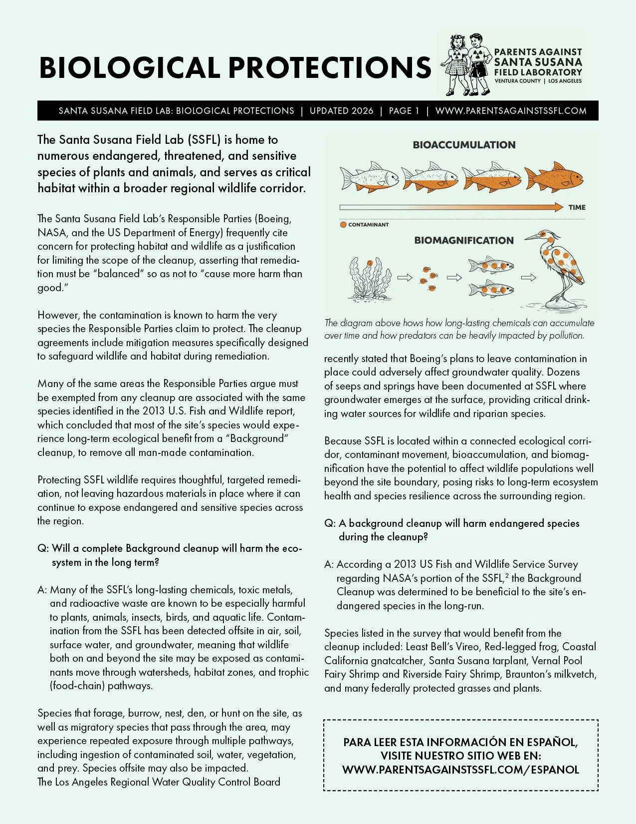 The Santa Susana Field Lab (SSFL) is one of the most polluted sites in California. Persistent chemicals, toxic metals, and radioactive waste have been detected in the air, groundwater, and the Los Angeles and Ventura County’s Calleguas Creek Watersheds.